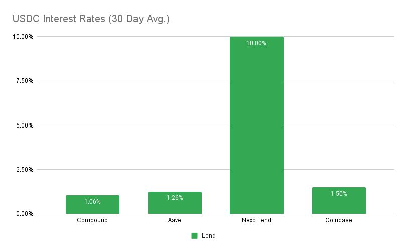 Highest Yields: Nexo Lend at 10% APY, Coinbase at 1.5% APY